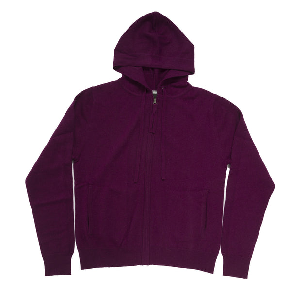 100% Cashmere Ladies Crew Cardigan - Fuchsia