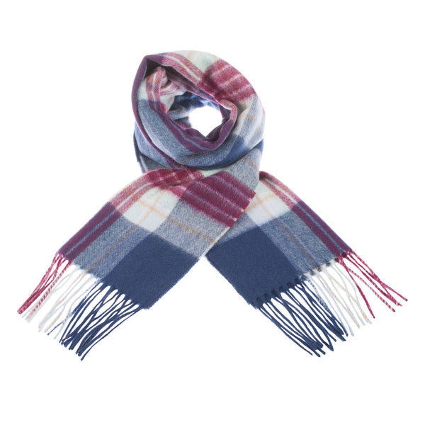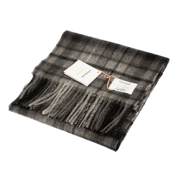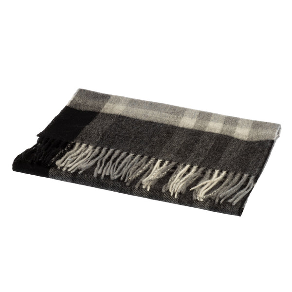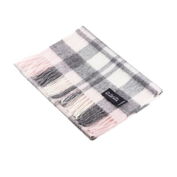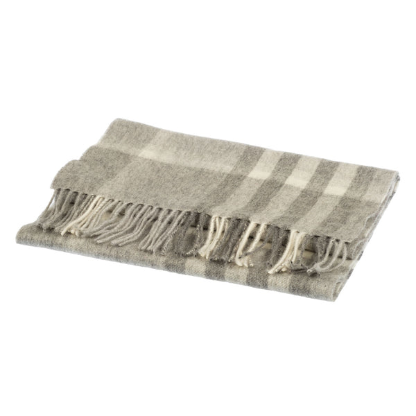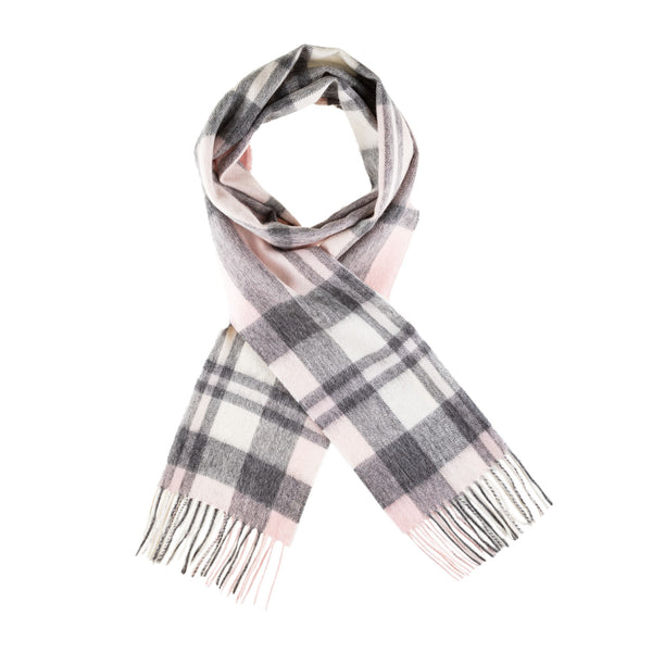 100% Cashmere Wide Tartan Scarf Mile Check - Pearl/Pewter