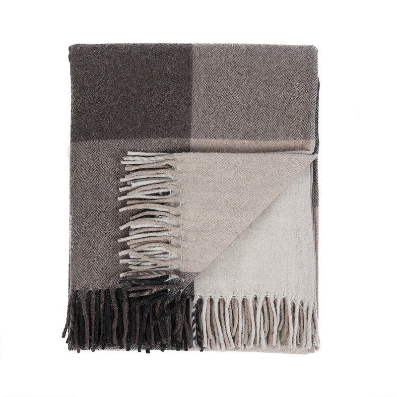 Block Check Herringbone Blanket Natural Taupe