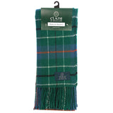 CLANS OF SCOTLAND Lambswool Clan Tartan Scarf. Timeless and traditional, this beautifully crafted tartan scarf is made from pure lambswool. The use of finest material makes it an exquisite garment with an extra-soft finish. The packaging includes a clan history and motto at the back. This scarf is a fantastic souvenir from Scotland either for yourself or your beloved ones.
